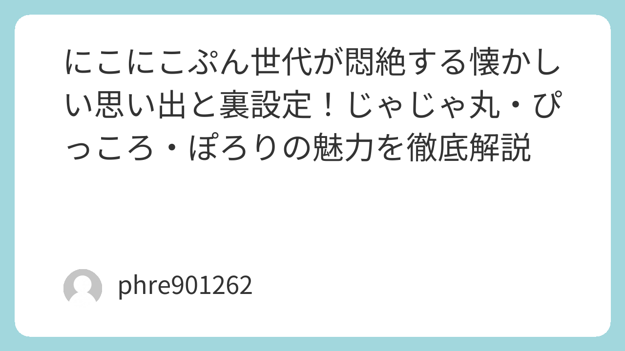 今回は、大人になった今だからこそ語りたい、にこにこぷんの深い魅力と、今すぐ買い戻したくなる懐かしの体験を深掘りします。