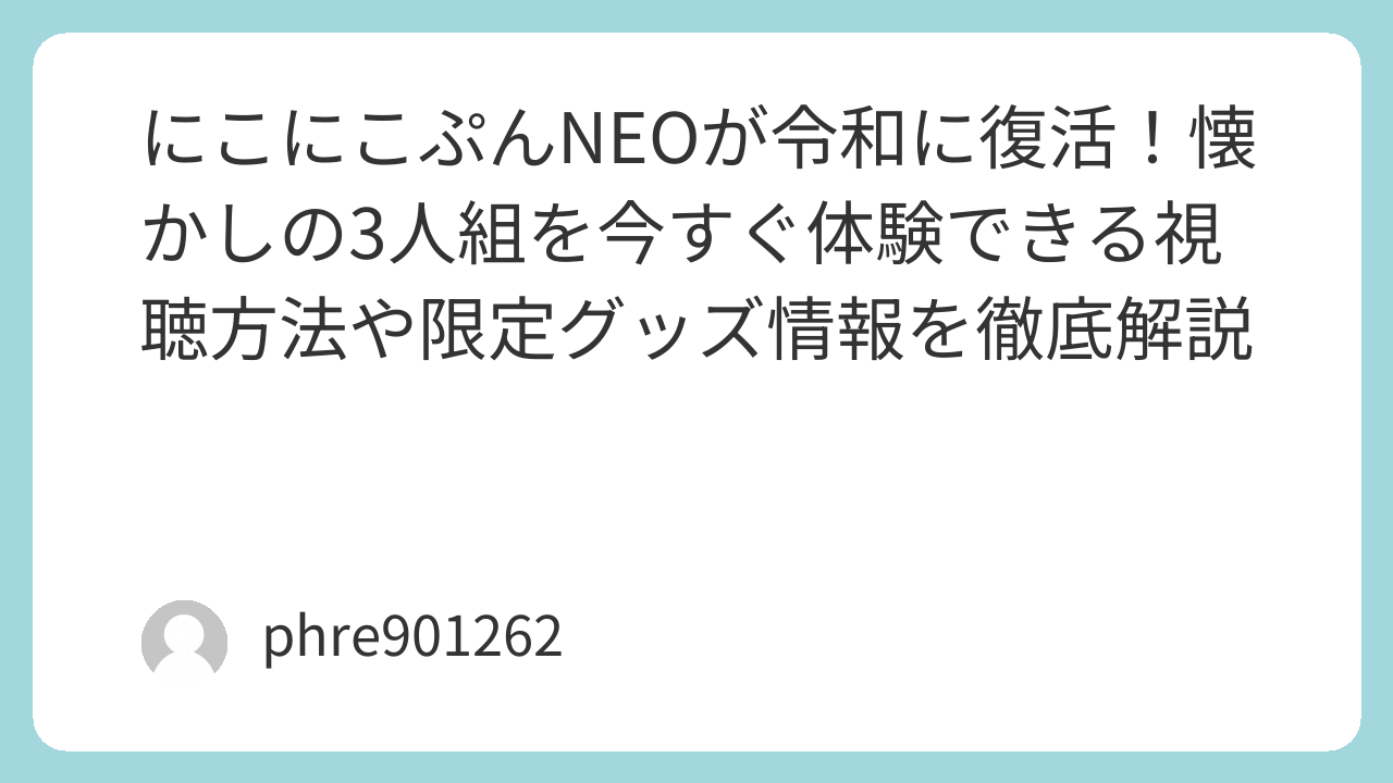 「にこにこぷんNEO」は、単なるリバイバルではありません。かつて子供だった私たちへの「お帰りなさい」というギフトであり、今の子供たちへの「初めまして」という招待状です。