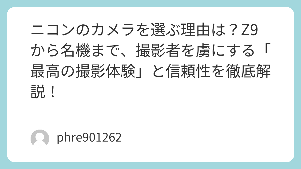 ニコンのカメラを選ぶ理由は?Z9から名機まで、撮影者を虜にする「最高の撮影体験」と信頼性を徹底解説!