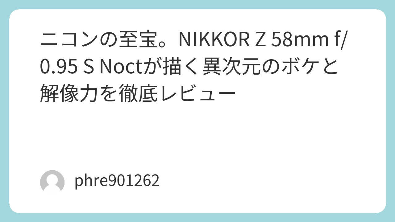 ニコンの至宝。NIKKOR Z 58mm f/0.95 S Noctが描く異次元のボケと解像力を徹底レビュー