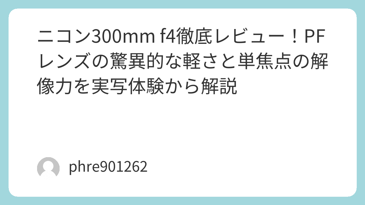 [amazon_link product=”AF-S NIKKOR 300mm f/4E PF ED VR”]は、重い機材で疲弊していた撮影者に「もっと遠くへ行ける」自由を与えてくれるレンズです。