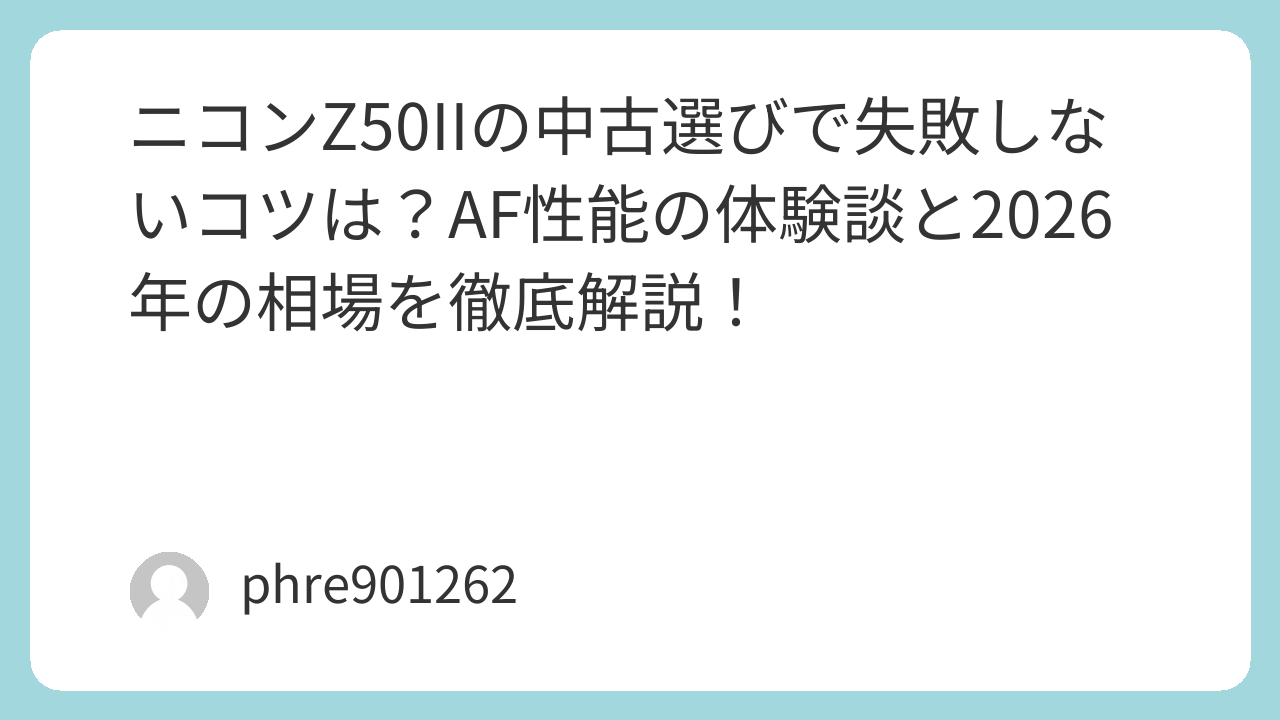 2026年現在、中古市場でも非常に人気が高い[amazon_link product=”Nikon Z50II”]ですが、選び方を一歩間違えると「こんなはずじゃなかった」と後悔するポイントもいくつか存在します。今回は、私が実際に使い倒して感じたリアルな体験談を交えながら、中古で賢く手に入れるための完全ガイドをお届けします。