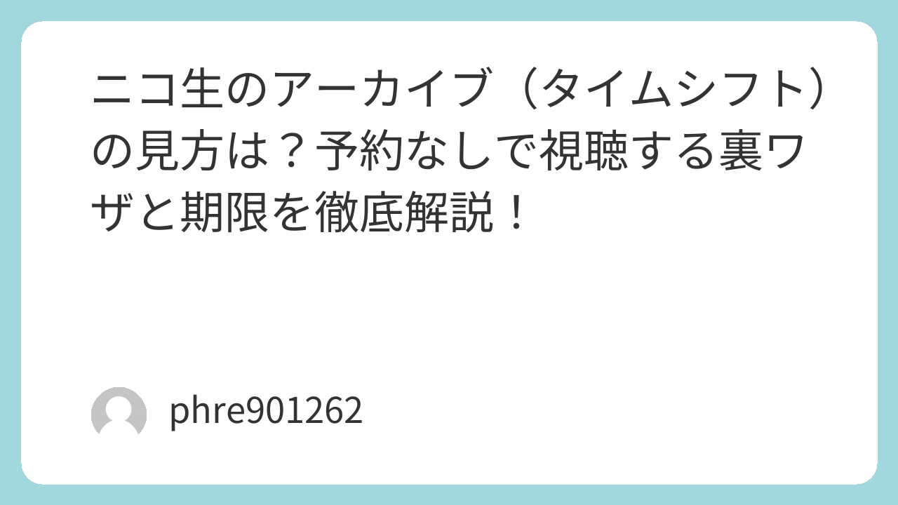 「あ、大好きな推しの生放送、今日だった!」と気づいた時には、すでに放送終了の文字。ニコニコ生放送(ニコ生)を長年使っている人なら、一度はこの「絶望感」を味わったことがあるのではないでしょうか。