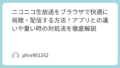 - 体験談: 以前、設定を適当にして録画した際、動きの激しいシーンで画面がカクカクになり、泣く泣く削除したことがあります。ビットレートは「6000kbps」程度、フレームレートは「30fps(または60fps)」に固定するのが、ニコ生の画質を損なわずスムーズに保存するコツです。