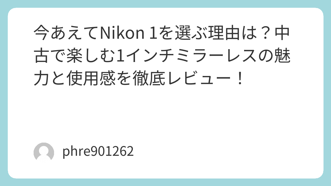 ニコンがかつて展開していた1インチセンサーのミラーレス「Nikon 1」シリーズ。ディスコン(生産終了)となって久しいこのカメラが、なぜ今、スナップ好きの間で再評価されているのか。実際に使い倒して見えた「スペック表には載らない快感」をお伝えします。