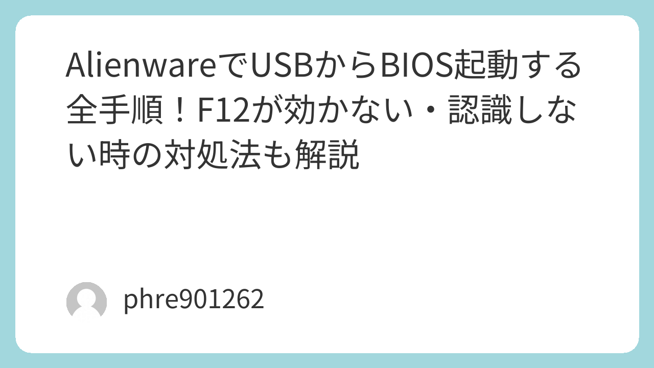 Alienware(Dell)の場合、BIOS設定を永続的に変更しなくても、「F12キー」を使えばその時だけUSBから起動させることが可能です。これが最も安全で簡単な方法です。