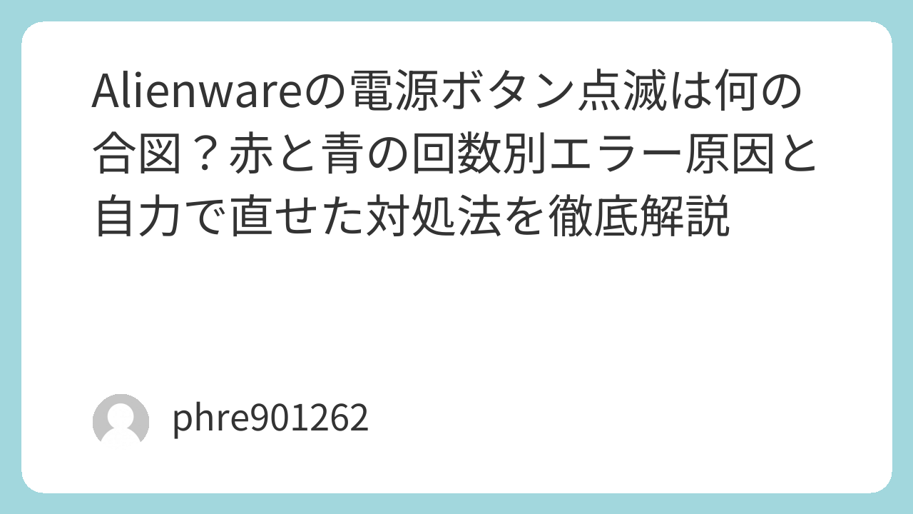 [amazon_link product=”Alienware”]の点滅は、あなたを困らせるためのものではなく、被害を最小限に抑えるための通知です。まずは焦らずに点滅の回数を数え、放電やメモリ確認を試してみてください。