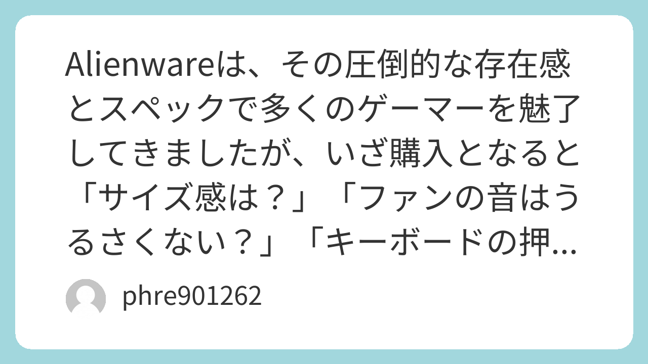 Alienwareは、その圧倒的な存在感とスペックで多くのゲーマーを魅了してきましたが、いざ購入となると「サイズ感は?」「ファンの音はうるさくない?」「キーボードの押し心地は?」といった、カタログスペックだけでは見えない不安がつきまといます。