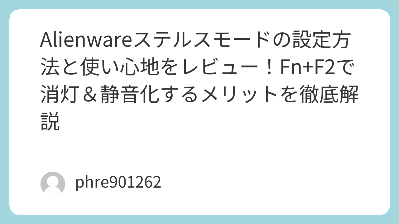Alienwareステルスモードの設定方法と使い心地をレビュー!Fn+F2で消灯&静音化するメリットを徹底解説
