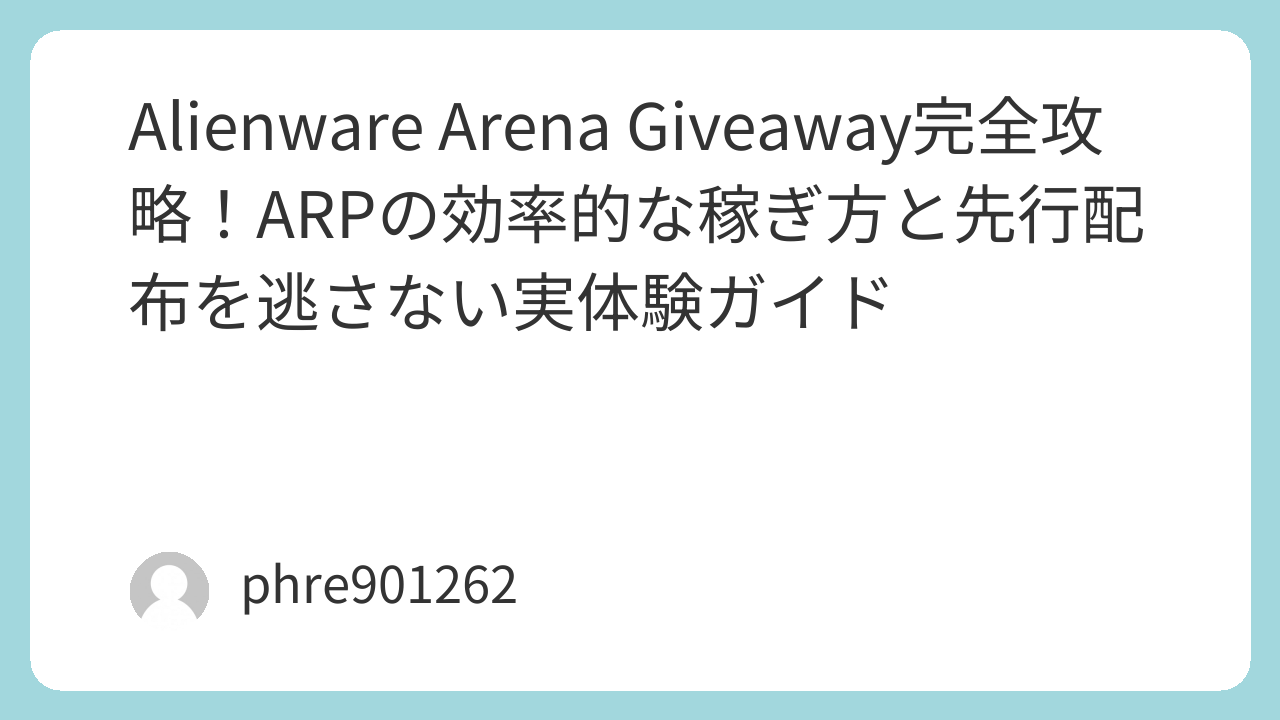 Alienware Arena Giveaway完全攻略!ARPの効率的な稼ぎ方と先行配布を逃さない実体験ガイド