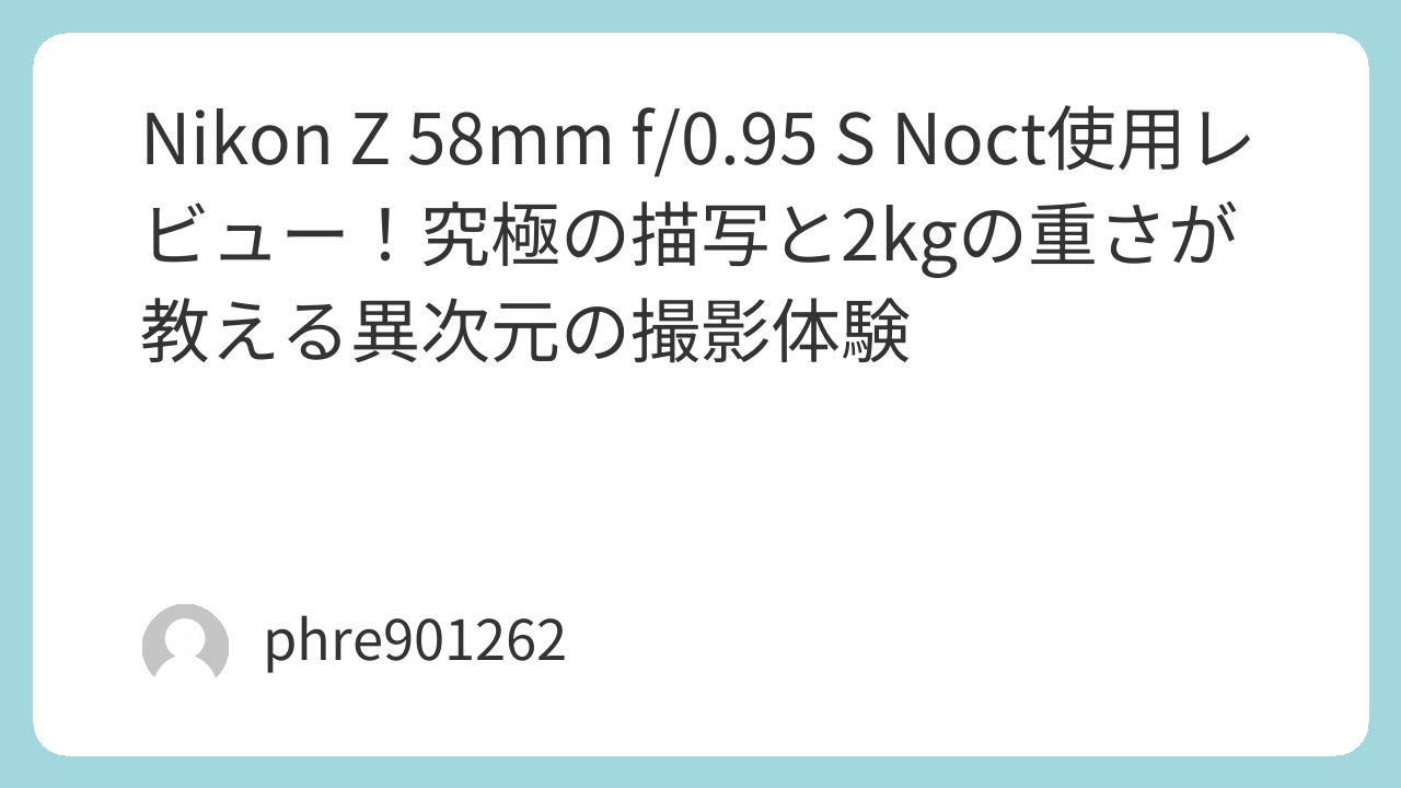 Nikon Z 58mm f/0.95 S Noct使用レビュー!究極の描写と2kgの重さが教える異次元の撮影体験