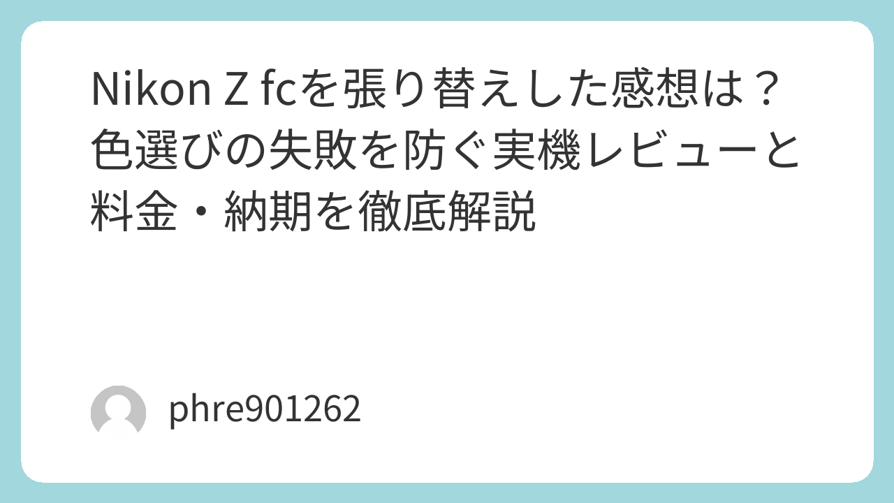 Nikon Z fcを張り替えした感想は?色選びの失敗を防ぐ実機レビューと料金・納期を徹底解説
