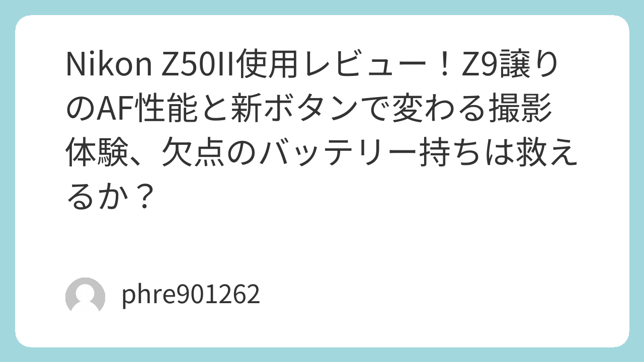 Nikon Z50II使用レビュー!Z9譲りのAF性能と新ボタンで変わる撮影体験、欠点のバッテリー持ちは救えるか?
