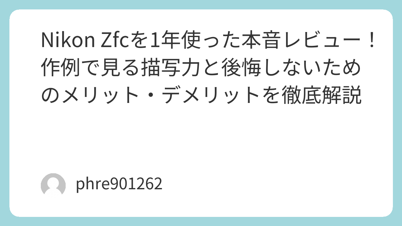 Nikon Zfcを1年使った本音レビュー!作例で見る描写力と後悔しないためのメリット・デメリットを徹底解説