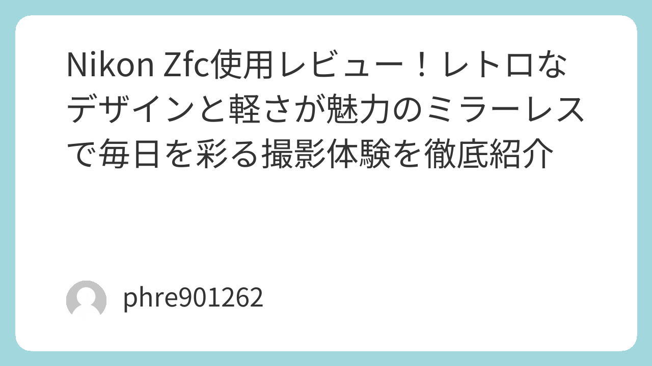 今回は、実際に[amazon_link product=”Nikon Zfc”]を数ヶ月使い倒して見えてきた、スペック表だけでは語れない「体温の宿った撮影体験」を等身大の言葉でお届けします。