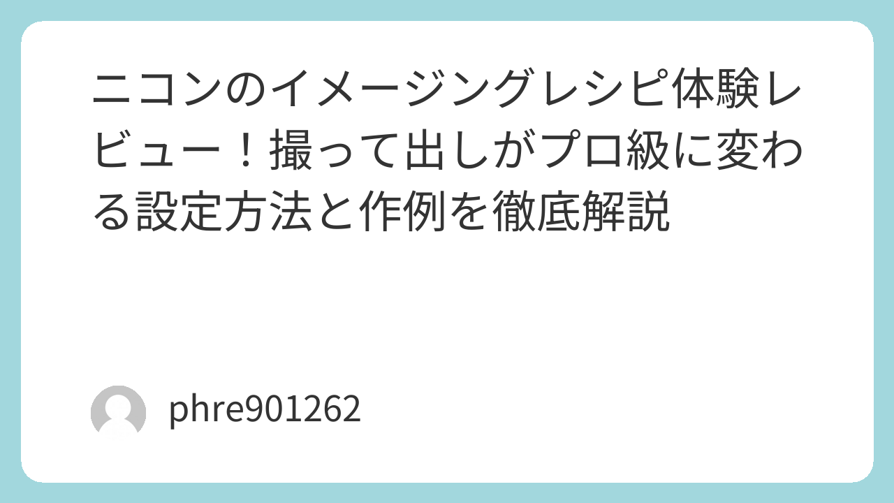 ニコンのイメージングレシピは、技術的な正解を求めるための道具ではなく、自分の「好き」を形にするための最短ルートです。
