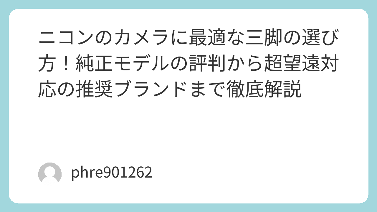ニコンのカメラに最適な三脚の選び方!純正モデルの評判から超望遠対応の推奨ブランドまで徹底解説