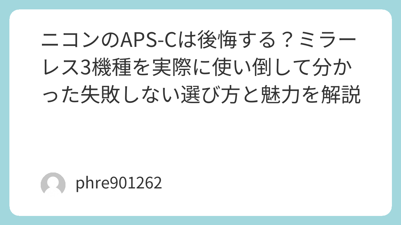 今回は、フルサイズ機も使い倒してきた筆者の実体験をもとに、ニコンのAPS-Cミラーレスを選ぶべき理由と、後悔しないための機種選びを本音でお伝えします。