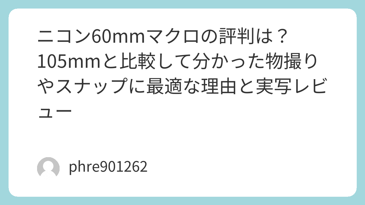 多くのニコンユーザーが一度は通る「60mmか105mmか」という悩み。私もかつては「遠くから大きく写せる方が正義」と信じて疑いませんでしたが、室内での物撮りや街角スナップに持ち出した際、その考えは180度変わりました。