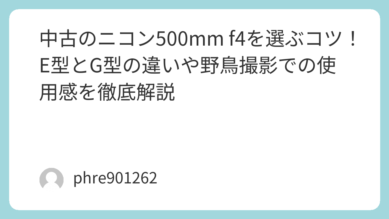 しかし、いざ中古を探すと[amazon_link product=”AF-S NIKKOR 500mm f/4G ED VR”]と[amazon_link product=”AF-S NIKKOR 500mm f/4E FL ED VR”]の2モデルで大きく価格が異なり、どちらにすべきか頭を抱える方も多いはずです。今回は、実際に両方のモデルをフィールドで使い倒した経験をもとに、後悔しない選び方を解説します。