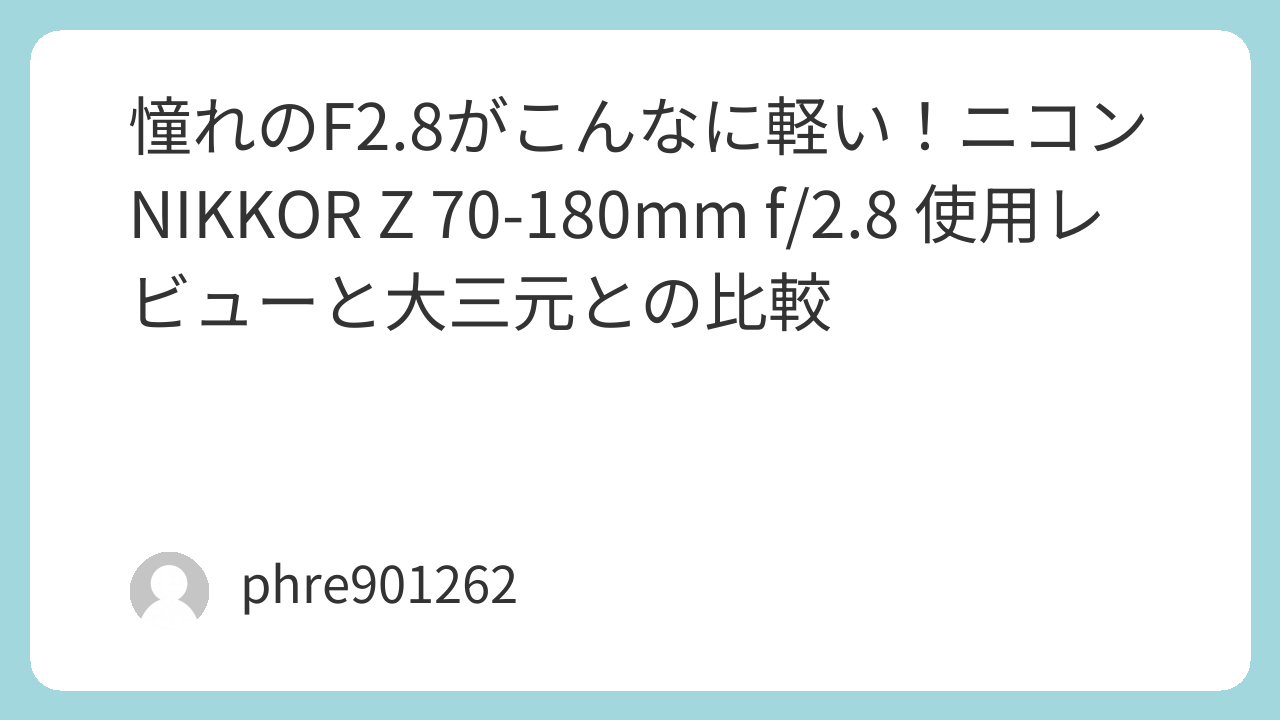 そんなこれまでの常識を、ニコンが鮮やかに塗り替えてくれました。今回ご紹介するのは、Zマウントユーザーの間で「機動力の革命児」と囁かれる[amazon_link product=”NIKKOR Z 70-180mm f/2.8″]です。