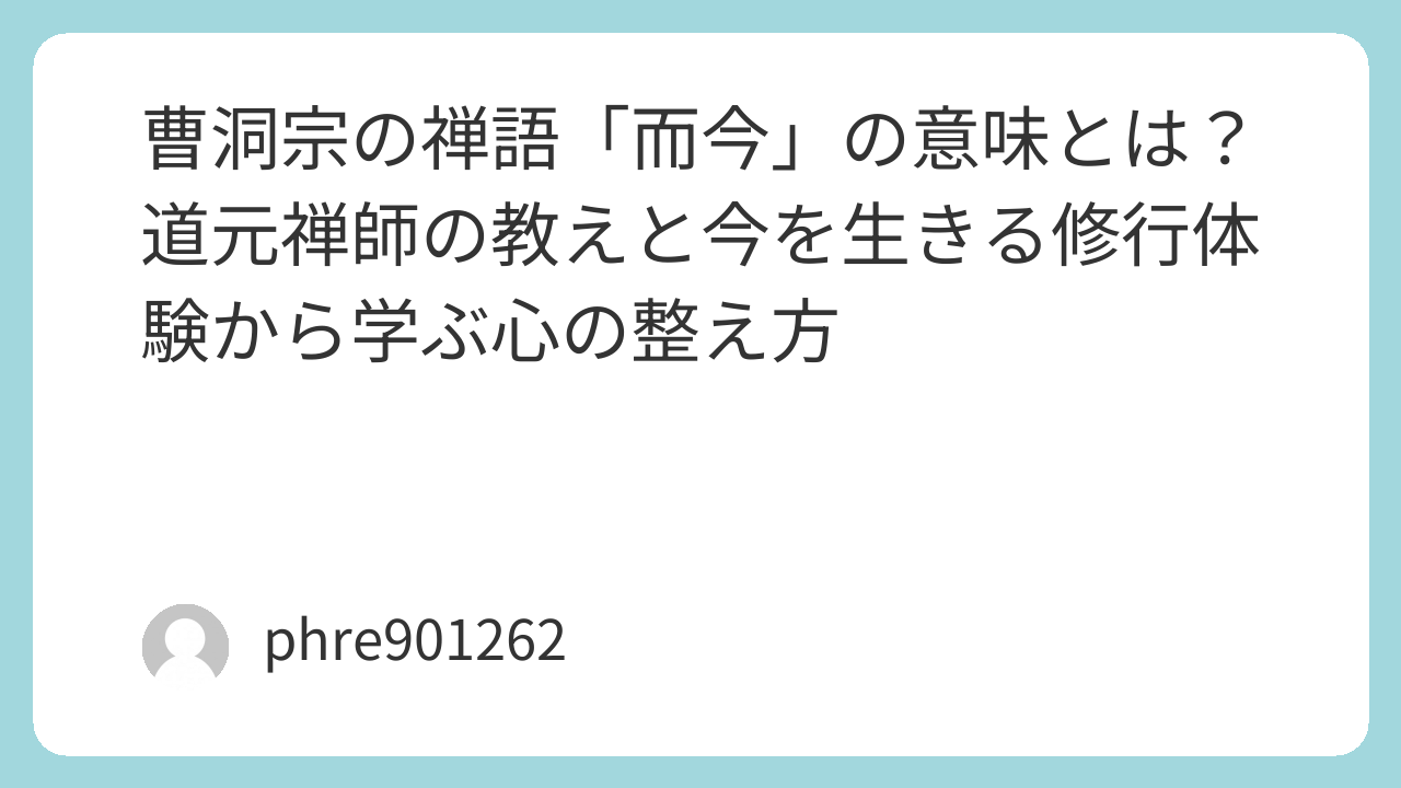 曹洞宗の禅語「而今」の意味とは?道元禅師の教えと今を生きる修行体験から学ぶ心の整え方