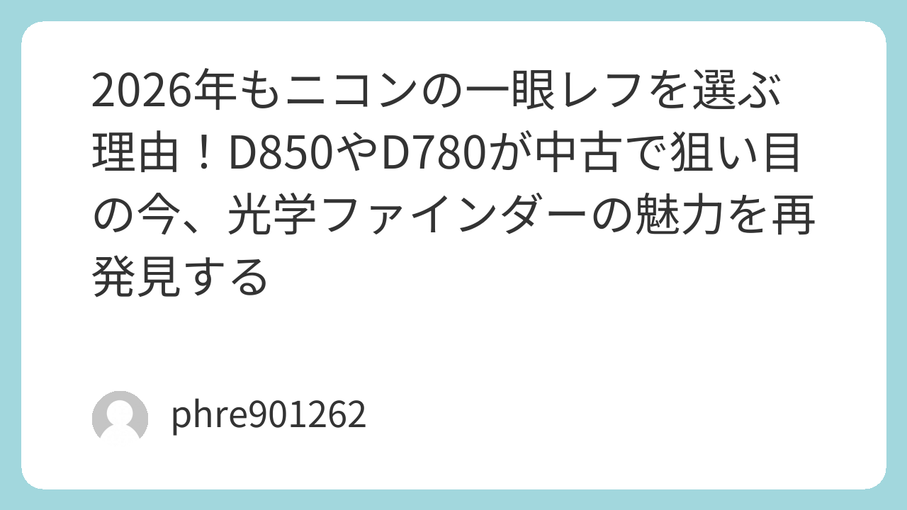 2026年もニコンの一眼レフを選ぶ理由!D850やD780が中古で狙い目の今、光学ファインダーの魅力を再発見する