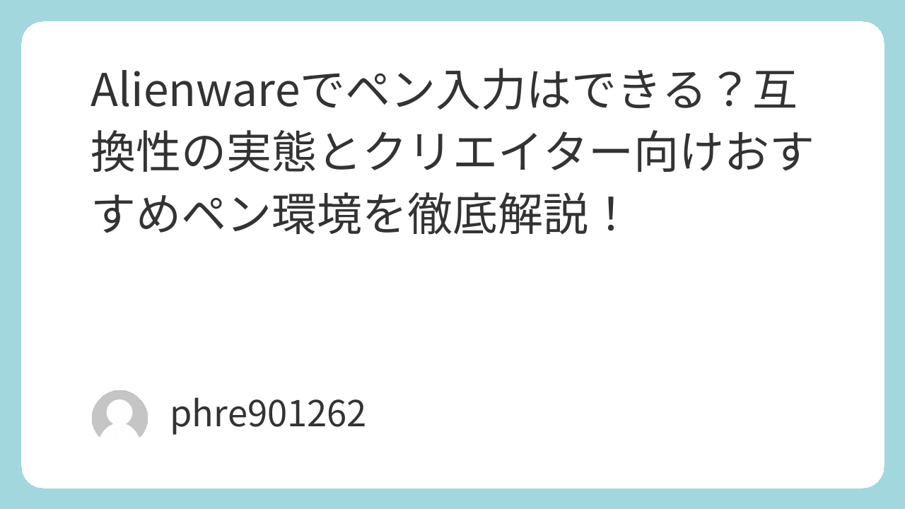 実は、Alienwareシリーズの多くは一般的な2-in-1 PCとは異なり、専用のアクティブペン(筆圧検知あり)には公式対応していません。この記事では、私が実際に複数のスタイラスペンやデバイスを試して辿り着いた、Alienwareでの「最高のペン体験」を構築する方法をシェアします。