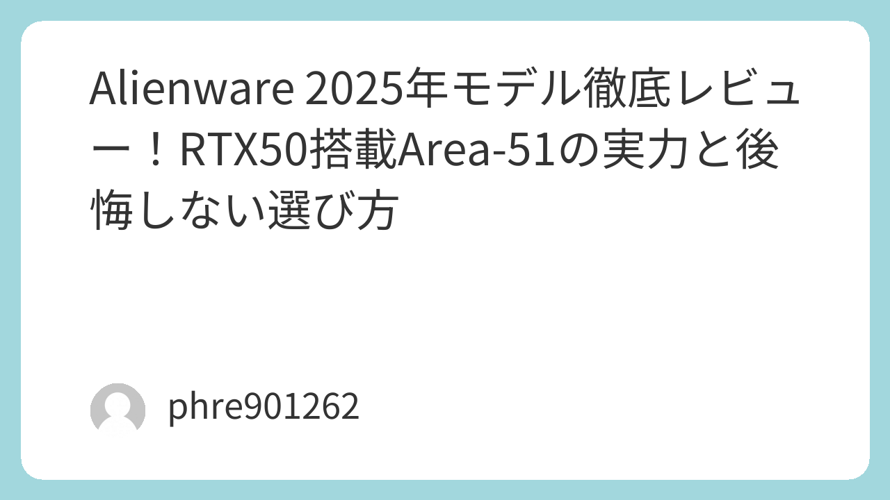 Alienware 2025年モデル徹底レビュー!RTX50搭載Area-51の実力と後悔しない選び方