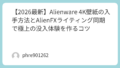「32インチの平面モニターは、端の視認性が悪くて使いにくい」という先入観がありました。しかし、[amazon_link product=”Alienware AW3225QF”]の1700Rという緩やかな曲線は、その懸念を完璧に払拭してくれました。