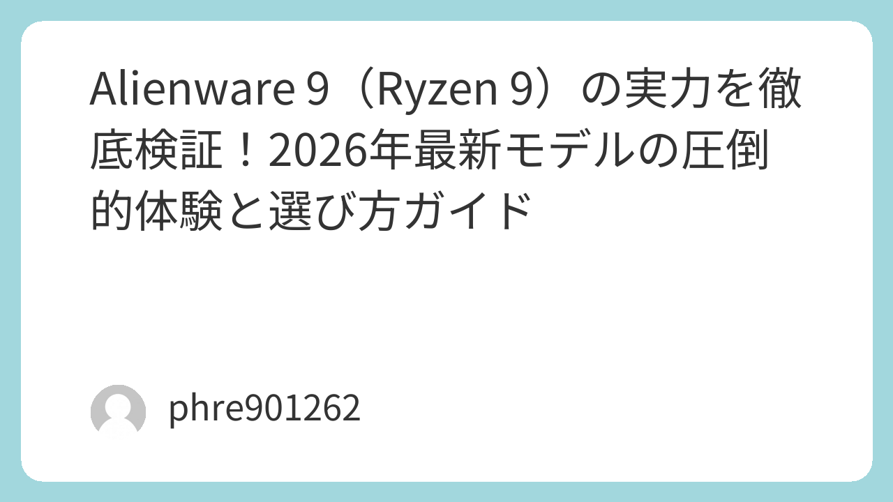 Alienware 9(Ryzen 9)の実力を徹底検証!2026年最新モデルの圧倒的体験と選び方ガイド