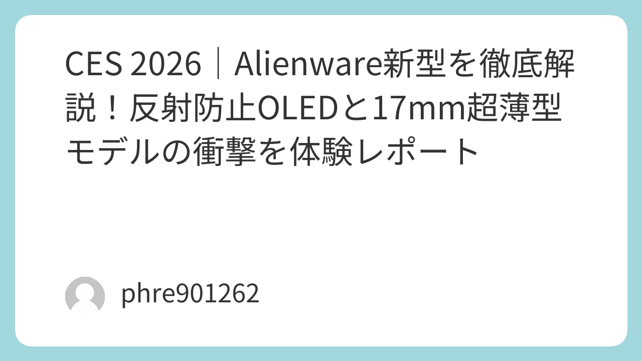 CES 2026|Alienware新型を徹底解説!反射防止OLEDと17mm超薄型モデルの衝撃を体験レポート