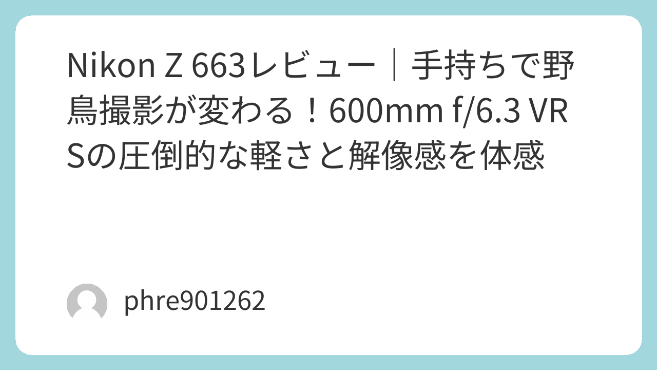 Nikon Z 663レビュー|手持ちで野鳥撮影が変わる!600mm f/6.3 VR Sの圧倒的な軽さと解像感を体感