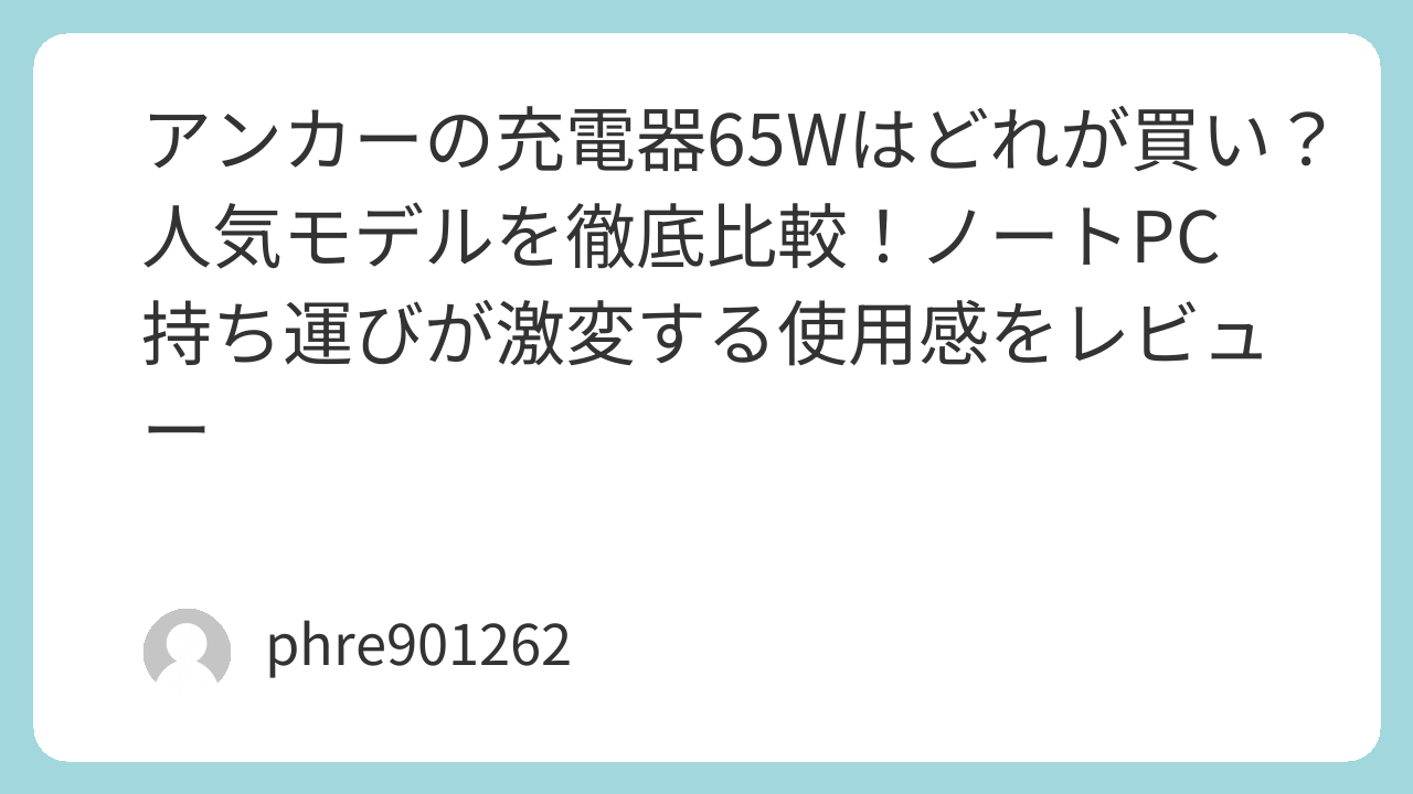 「ノートPCの純正アダプタ、重すぎて持ち歩くのが苦痛……」そんな悩みを一瞬で解決してくれるのが、[amazon_link product=”Anker”]の65W充電器です。