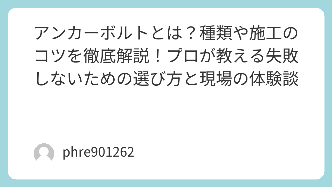 - 体験談: DIYで物置を固定する際によく使われますが、「叩けば固定される」という手軽さゆえに、穴の深さを適当にする人が多いです。深く掘りすぎるとボルトが埋まってしまい、二度と引き抜けない絶望を味わうことになります。