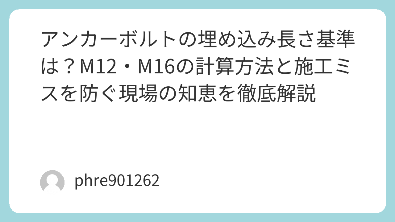 アンカーボルトの埋め込み長さ基準は?M12・M16の計算方法と施工ミスを防ぐ現場の知恵を徹底解説