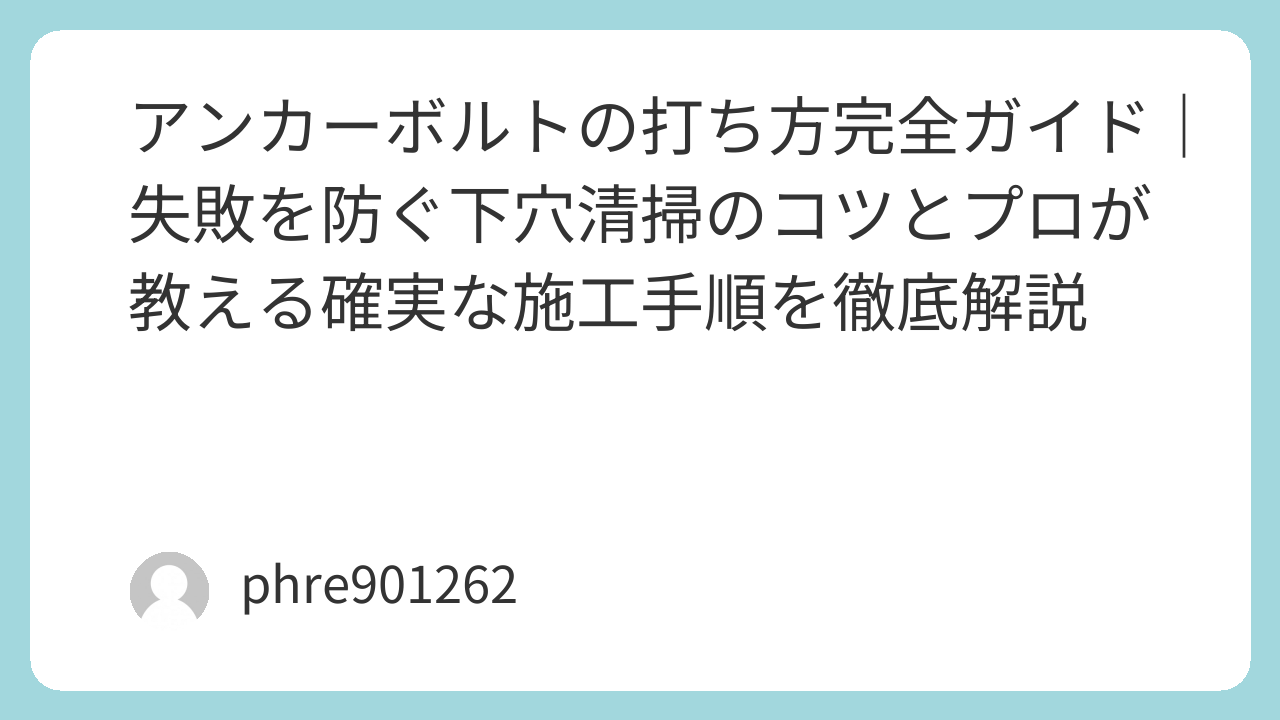 アンカーボルトの打ち方完全ガイド|失敗を防ぐ下穴清掃のコツとプロが教える確実な施工手順を徹底解説