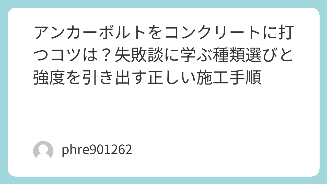 コンクリートアンカーの施工は、やり直しが極めて困難です。だからこそ、スペック表の数字よりも「現場で何が起きるか」を知っておくことが、成功への一番の近道になります。