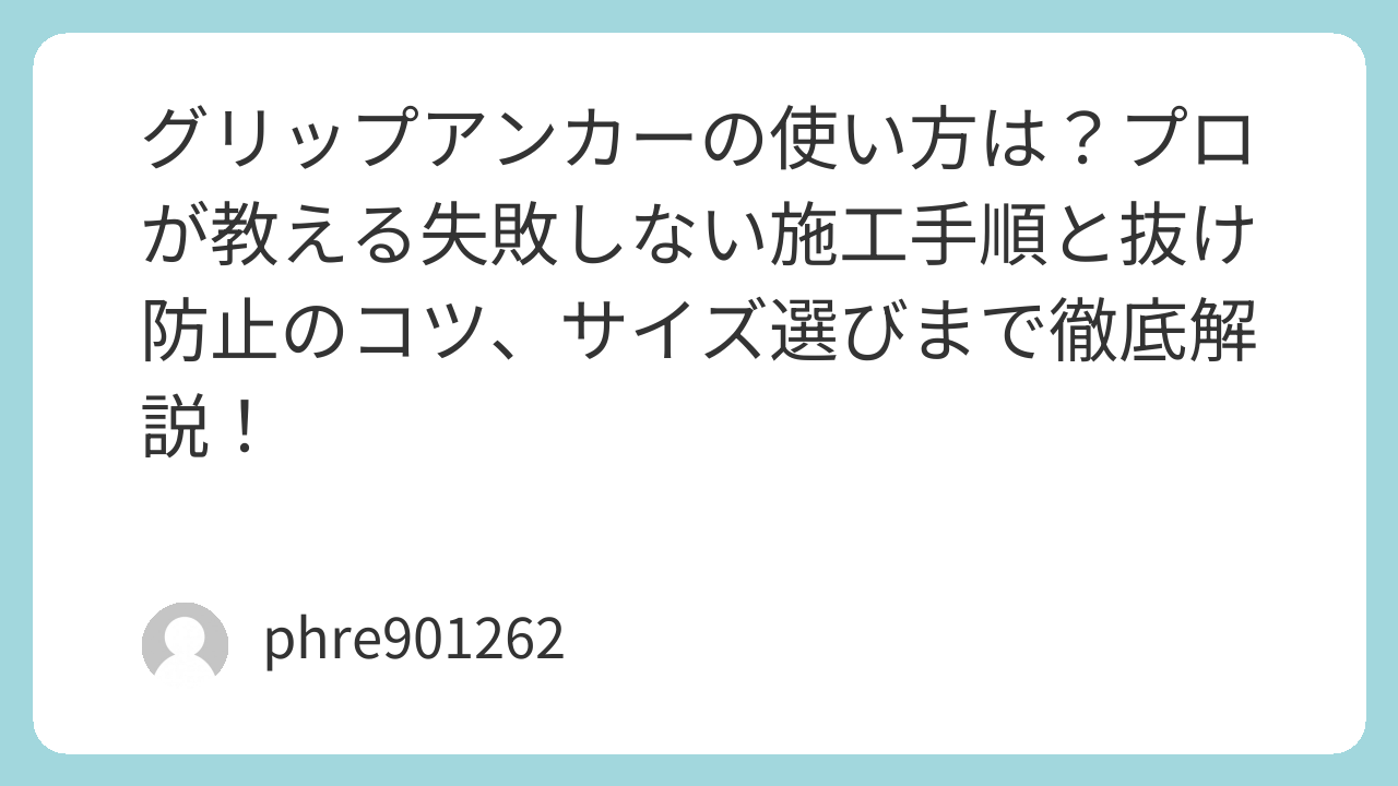 実は、グリップアンカーの施工はシンプルに見えて、プロとアマチュアで決定的な差が出るポイントがいくつかあります。今回は、数々の現場をこなしてきた経験から、確実に固定するためのコツと、絶対に避けたい失敗例をリアルな体験談を交えて解説します。