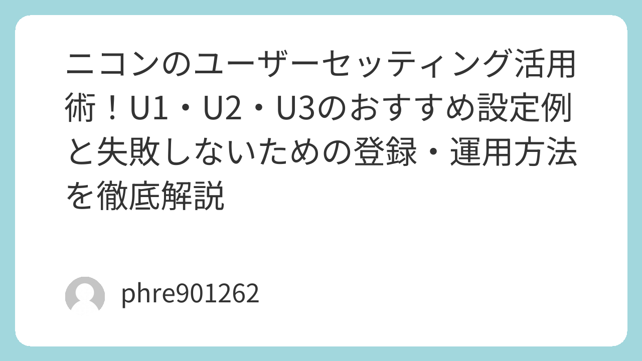 そんな苦い経験をゼロにしてくれるのが、ニコンのダイヤルにある「U1・U2・U3(ユーザーセッティング)」機能です。