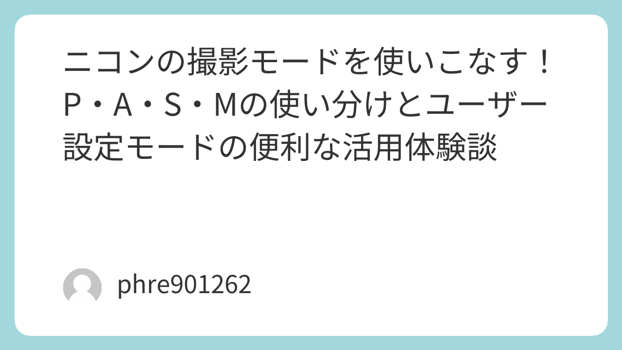 ニコンの撮影モードを使いこなす!P・A・S・Mの使い分けとユーザー設定モードの便利な活用体験談