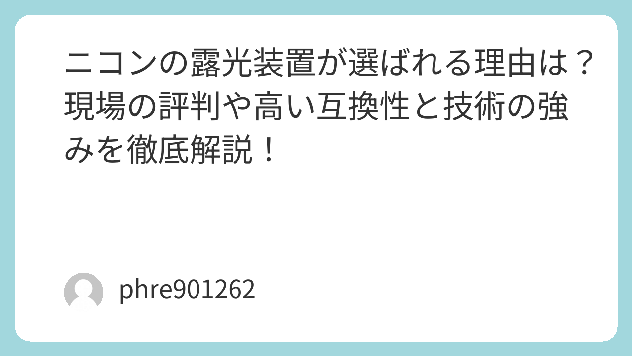 ニコンの露光装置は、単に微細な線を引くための道具ではなく、エンジニアが長年培ってきた技術や想いを、次世代の製品へと確実に「つなぐ」ためのプラットフォームなのです。
