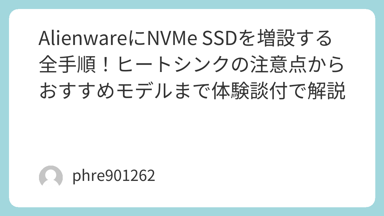 AlienwareにNVMe SSDを増設する全手順!ヒートシンクの注意点からおすすめモデルまで体験談付で解説