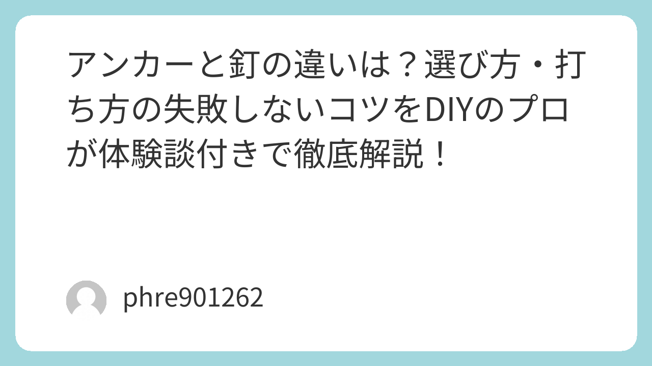 「アンカー」と「釘」。一見似ていますが、その役割は全く異なります。かつての私のように「面倒だから釘でいいや」と妥協せず、用途に合ったものを選んでください。
