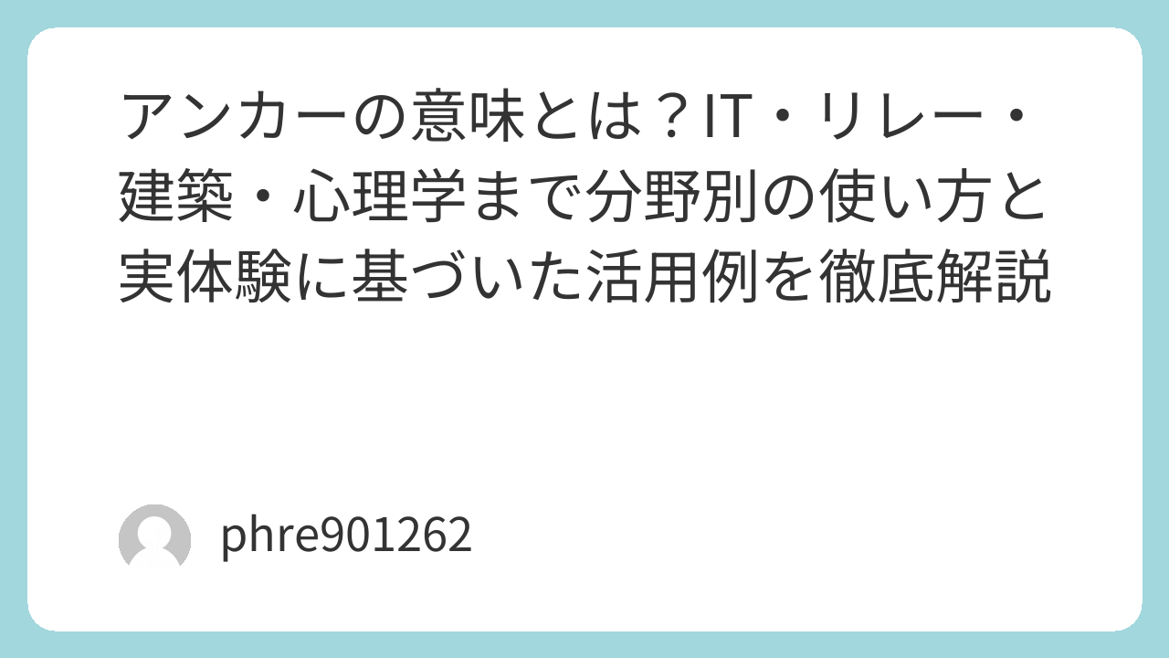 アンカーの意味とは?IT・リレー・建築・心理学まで分野別の使い方と実体験に基づいた活用例を徹底解説