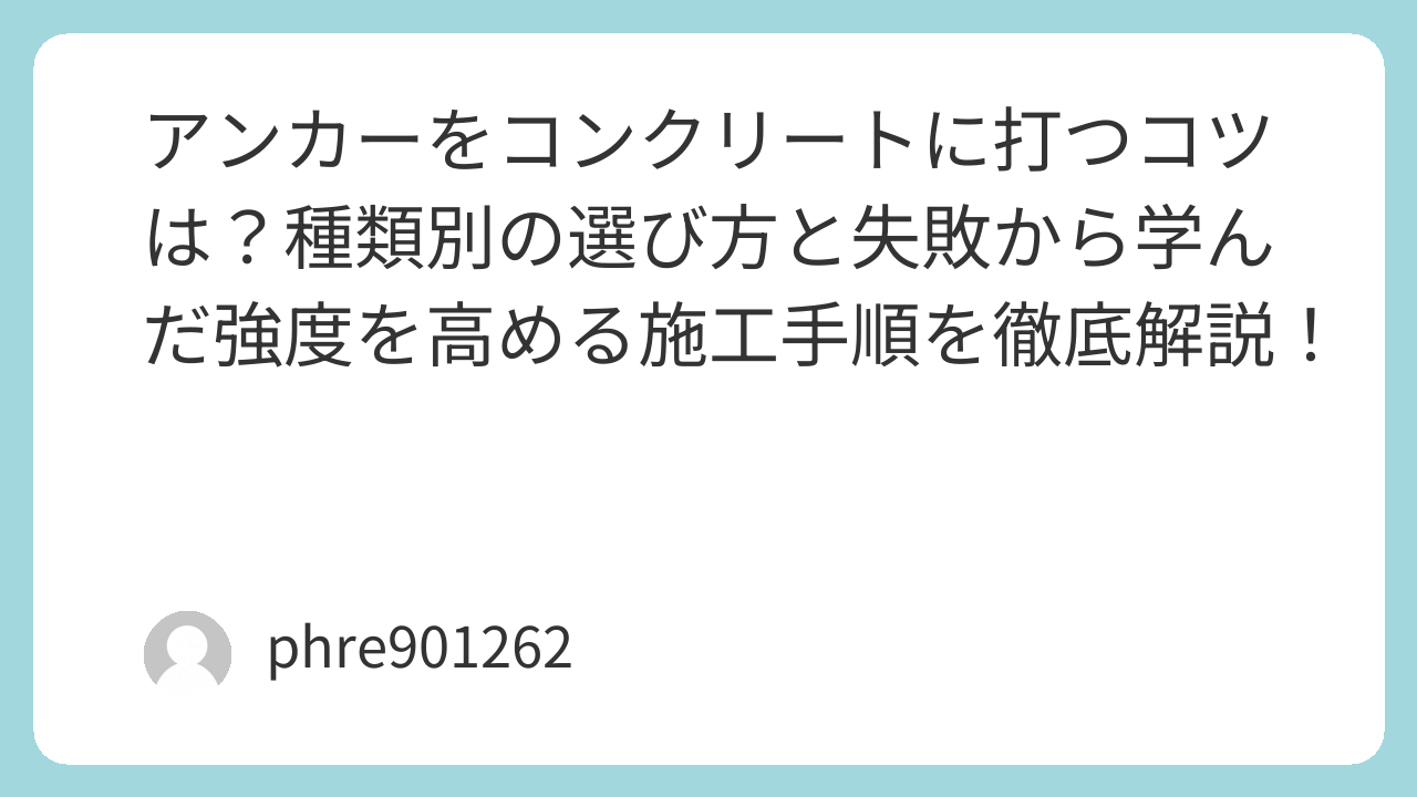 初心者がやりがちな「アンカー施工」3つの失敗と苦い思い出