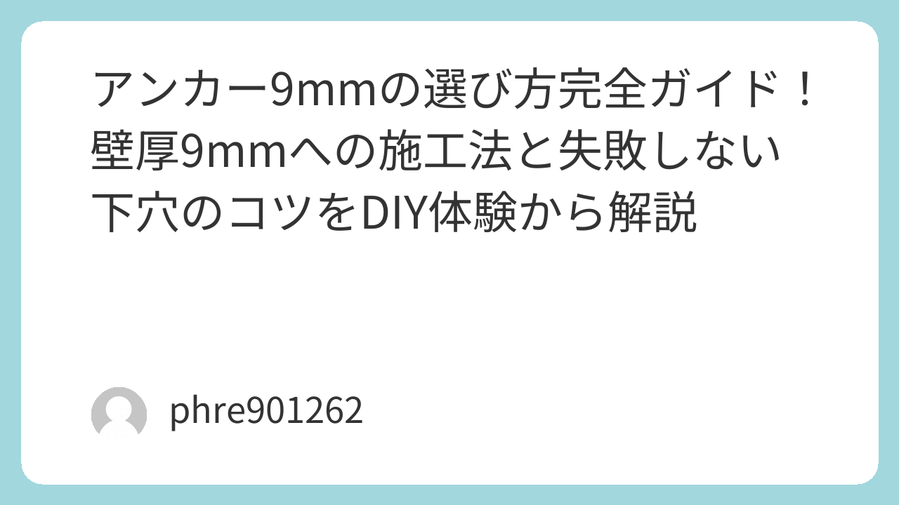 この記事では、そんな私の数々の失敗経験をもとに、9mmという条件下で絶対に失敗しないアンカー選びと施工の極意をシェアします。