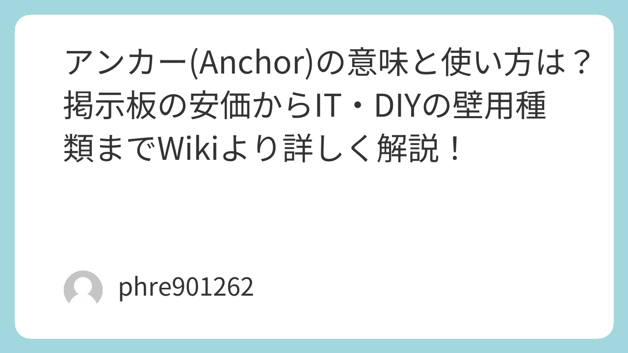 アンカー(Anchor)の意味と使い方は?掲示板の安価からIT・DIYの壁用種類までWikiより詳しく解説!