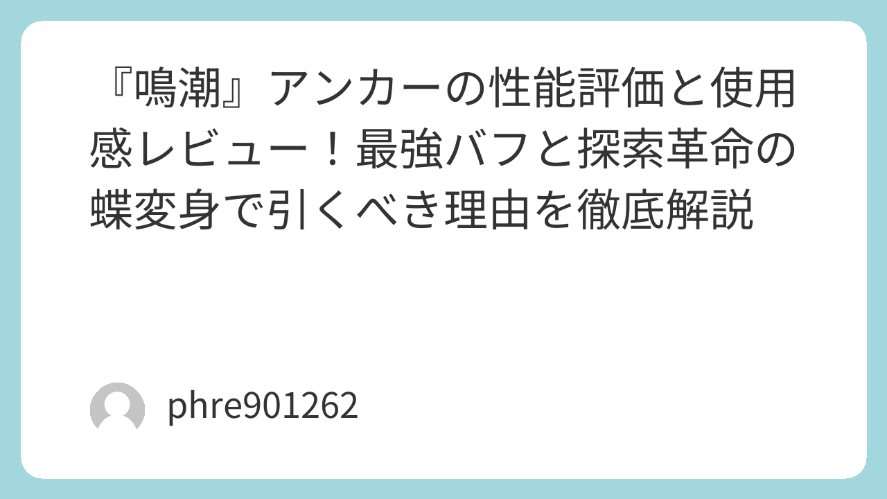 実装から数週間、実際に深層塔(エンドコンテンツ)や日々の探索でアンカーを使い込んだ体験をもとに、なぜ彼女が「引かない理由がない」と言われるのか、その圧倒的な実力を本音でレビューします。
