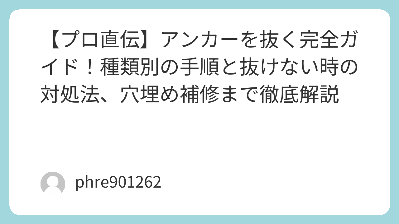 アンカー撤去は、力ではなく「構造の理解」と「適切な道具」の勝負です。もしDIYの範囲を超えていると感じたり、構造体に影響が出そうな太いアンカーだったりする場合は、無理をせず「あと施工アンカー施工士」などのプロに相談してください。